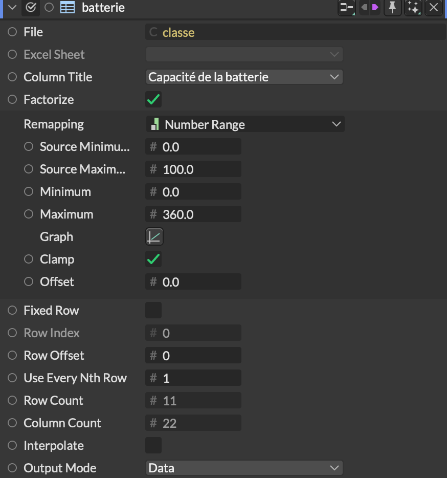 Cavalry est capable de parcourir les données d'un fichier .csv ou Google Sheet (pro), ou d'un calque comme Value Array. Il est ensuite assez simple d'extraire les valeurs et de les associer à des paramètres formels.