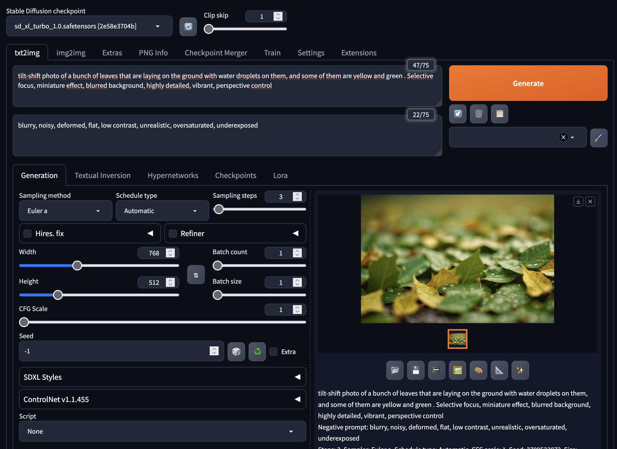 sd_xl_turbo_1.0elle est à régler sur 1 pour avoir les meilleurs résultats.
